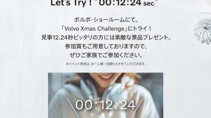 こんにちは!ボルボ・カー千種アテンダントです。Let’s Try ! "00:12:24sec" Volvo Xmas Challenge!12.24秒ぴったり目指してみてください!プレゼントご用意しております。みなさま是非挑戦してみてください!ご来店お待ちしております。