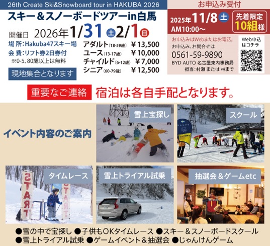 26th Create Ski&Snowboard tour in HAKUBA 2026