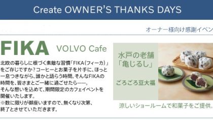こんにちは。ボルボ・カー千種アテンダントです。9月20日(土)21日(日)の2日間、Create OWNER’S THANKS DAYSを開催いたします!限界まで豆を混ぜこんだもちもち生地が絶品!水戸の老舗 亀じるしの 「ごろごろ豆大福」ずっしりと大きいビッグサイズで、豆、餅、...