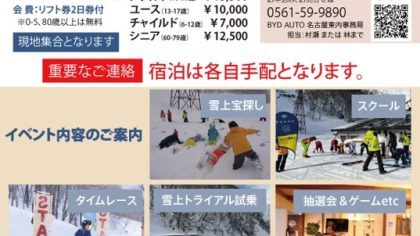 こんにちは!ボルボ・カー千種アテンダントです。 26th Create Ski&Snowboard tour in HAKUBA 2026今年でなんと26回目!スキー&スノーボードツアーin白馬開催です! 開催日:2026年1月31日(土)-2月1日(日)場所:Hakuba47スキー場会費:リフト券2日券付(...